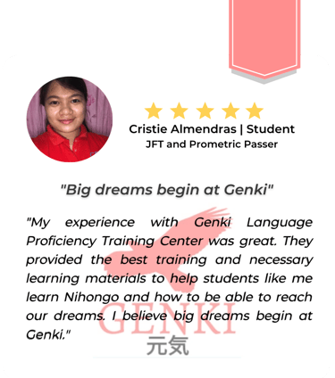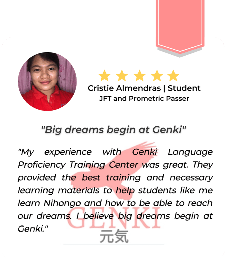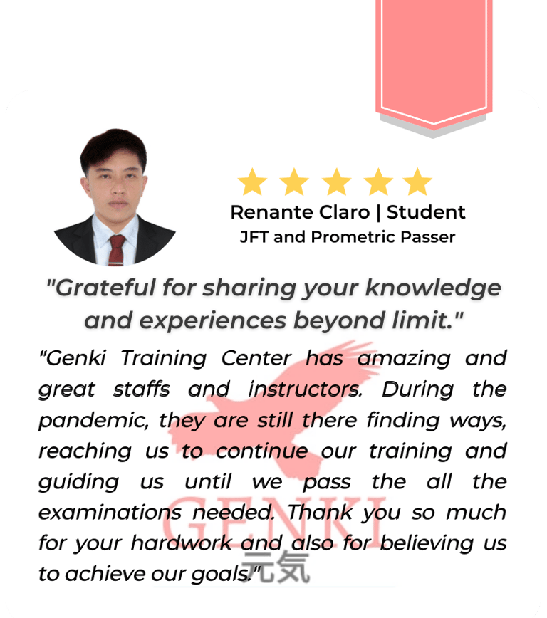 Genki Training Center brings you not only our FREE online training program for Japanese Language but also our free preparatory courses for your language proficiency exams. Our preparation courses include reviews and practices.