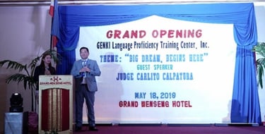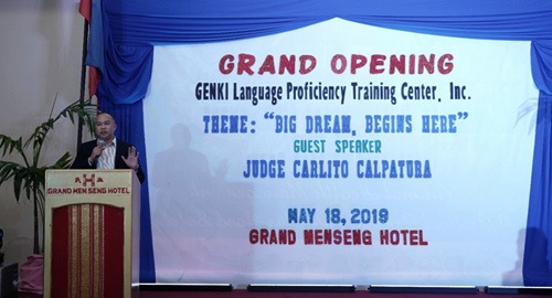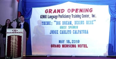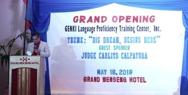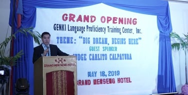"Today, we will be making a history in Davao, as we officially open, the GENKI Training Center, which, will pave the way of our students to achieve their dreams and change their lifestyle. The goal is to provide quality Japanese Language education for the students, and pass the N4 Japanese Language Proficiency Test. With the expertise of our Instructors with the support of all the GENKI Admin Staff, and supervision the management committee, I am sure GENKI will be at the top ranking Training Center in the JLPT examinations here in Davao City."